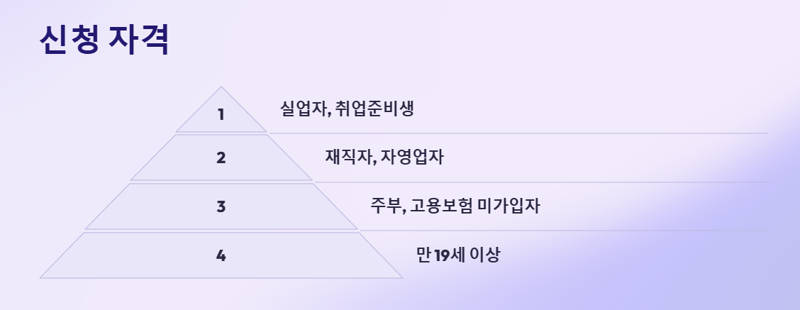 내일배움카드의 신청 범위는 생각보다 넓습니다. 원칙적으로 만 19세 이상이라면 상당수 지원이 가능한데, 자세히 보면 다음과 같은 유형이 대표적이에요.