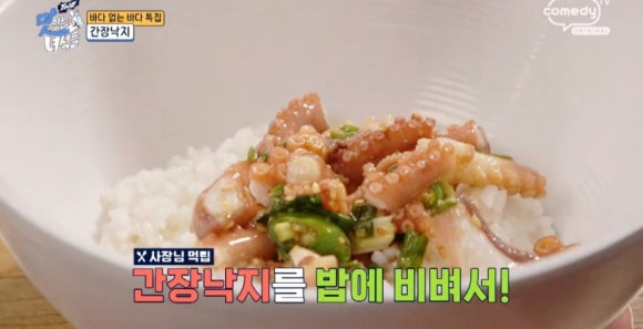 낙지 자체만 먹어도 제법 훌륭하지만, 방송 출연진의 팁처럼 밥에 간장 낙지를 통째로 얹어 덮밥처럼 즐기는 방법이 최고라고 해요. 간이 세지 않아 한입에 낙지를 통으로 넣어도 부담스럽지 않고, 달걀노른자를 풀어낸 듯 녹진한 맛이 살아납니다.