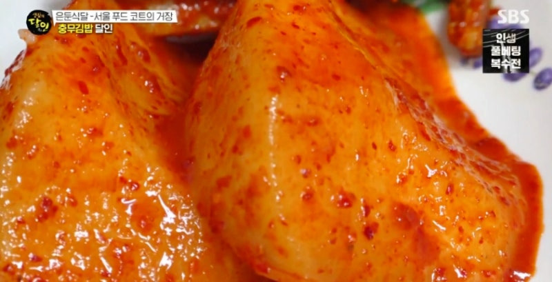 - 많은 사람들이 섞박지의 맛을 좌우하는 것은 숙성도라고 하는데, 충무할매김밥의 섞박지는 지나치게 익지 않으면서도 신선한 느낌을 유지하는 것이 특징입니다.