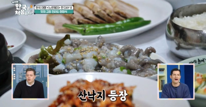 한성정은 홍어삼합, 산낙지, 떡갈비, 전복회 등 다양한 전라도 별미가 한상 가득 차려지는 곳으로, 전통 한정식의 진수를 느낄 수 있는 해남의 대표 맛집입니다. 이번 포스팅에서는 '어서 와 한국은 처음이지' 노르웨이 편에 등장한 한성정의 음식과 분위기를 자세히 소개해드리겠습니다!